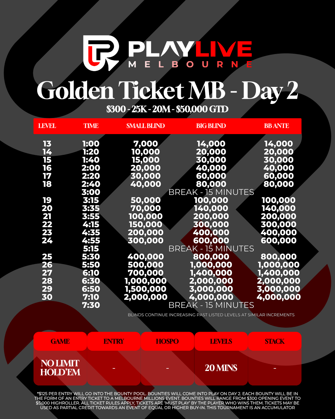 PlayLive Melbourne Millions Structures